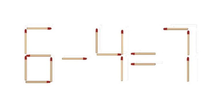 سر الحل يكمن في الرقم 6. كان عليك ببساطة تحريك عود الثقاب لتشكيل الرقم 3، ووضع عود الثقاب على إشارة الطرح لتحويلها إلى جمع. فتصبح المعادلة 3+4=7.